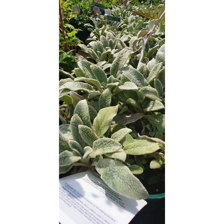 This Stachys variety has oval, woolly, grey leaves but does not flower as frequently as other Stachys species. As an evergreen, mat-forming plant, it is ideal for front-of-border planting for year-round interest.